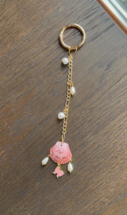Pearl Linked Chain - Authentic Scallop Shell, Bag Charm or Key Chain -